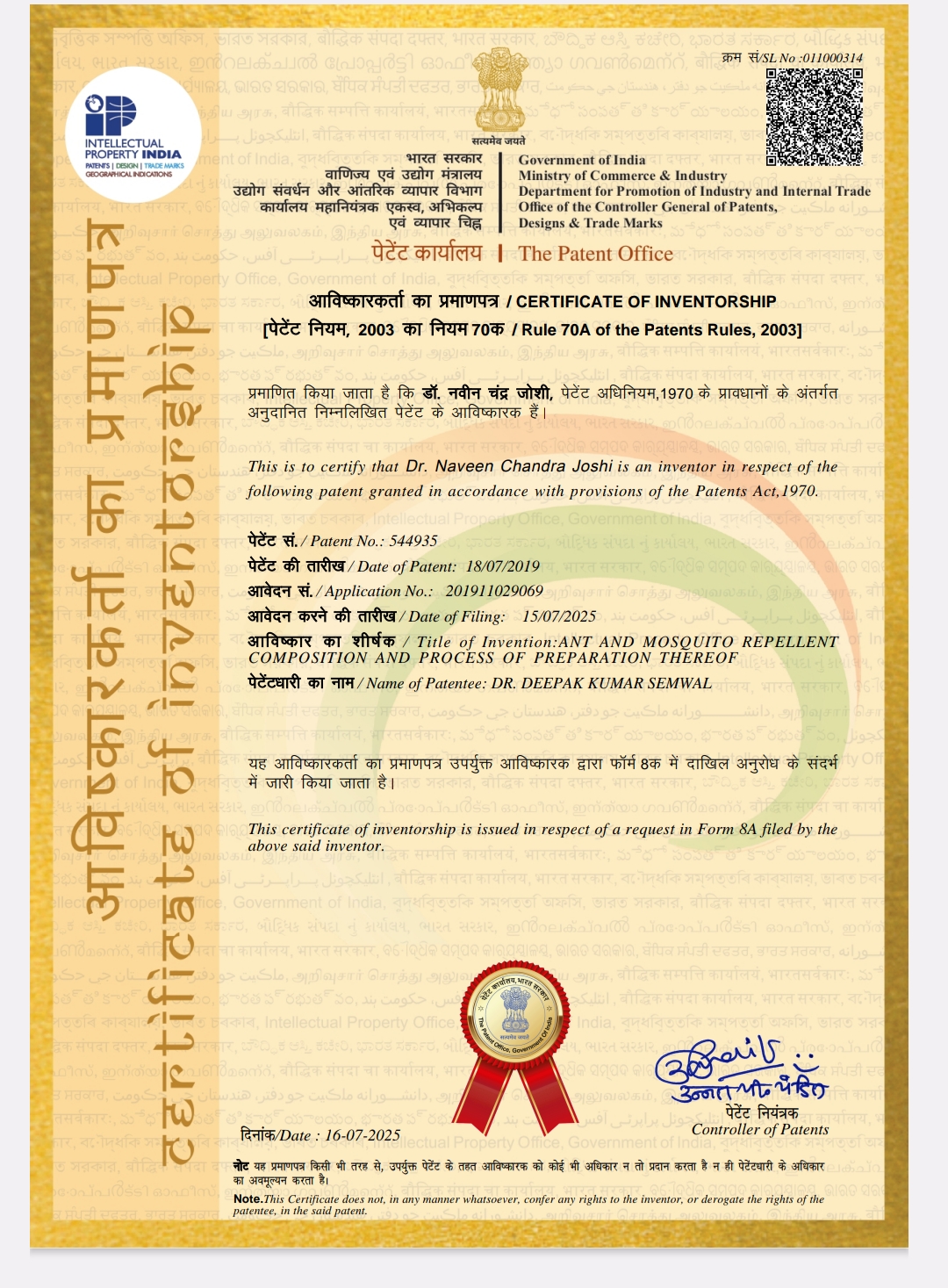 Screenshot_2025-07-16-11-25-54-06_e2d5b3f32b79de1d45acd1fad96fbb0f Continue Reading Previous डॉ. नवीन चंद्र जोशी को आयुर्वेदिक फार्मुलेशन पर मिला पेटेंट, आयुर्वेद चिकित्सा में नया कीर्तिमान